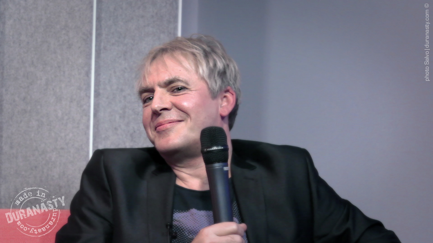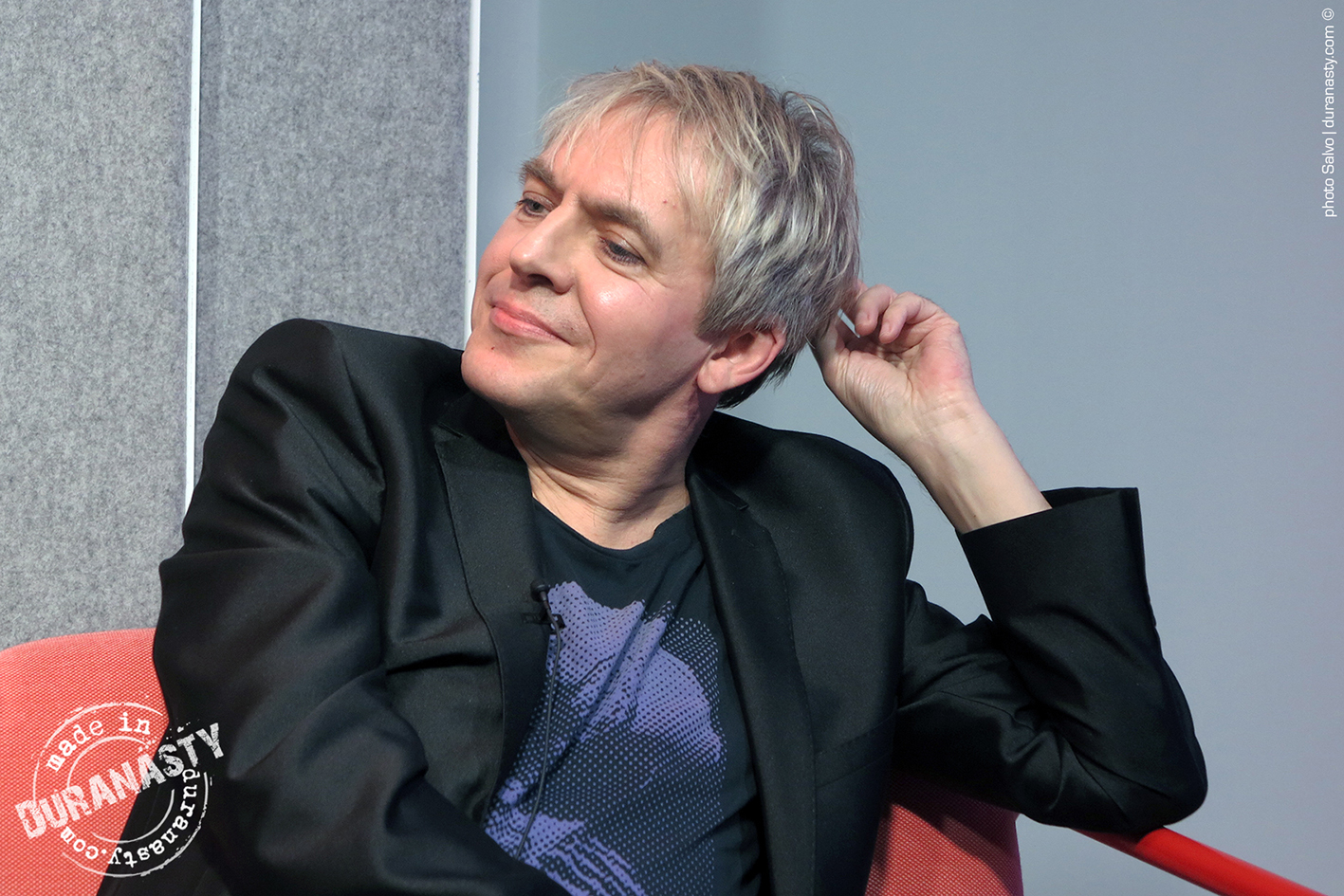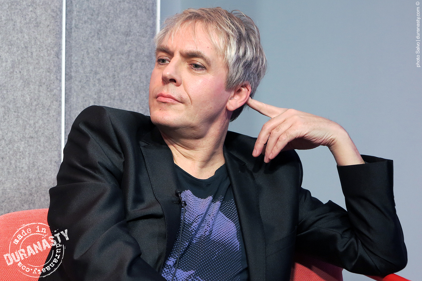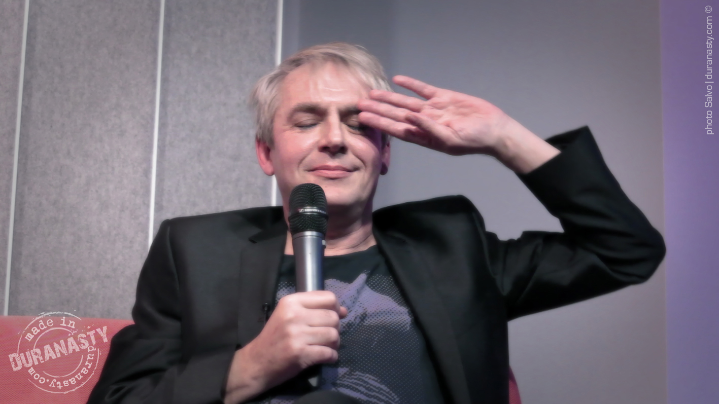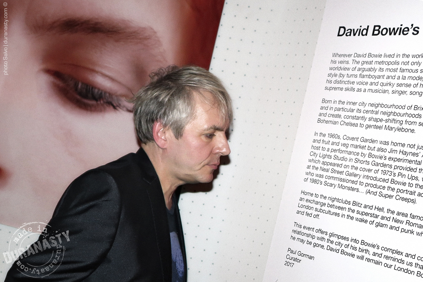 Above an intense close-up of Nick Rhodes, absorbed in his own thoughts, listening to the stories told by his colleagues, collecting his reflections on David Bowie, just before his speech.