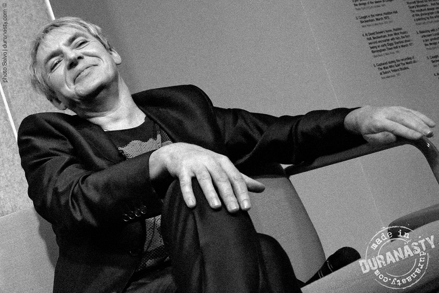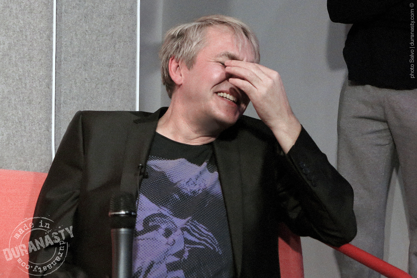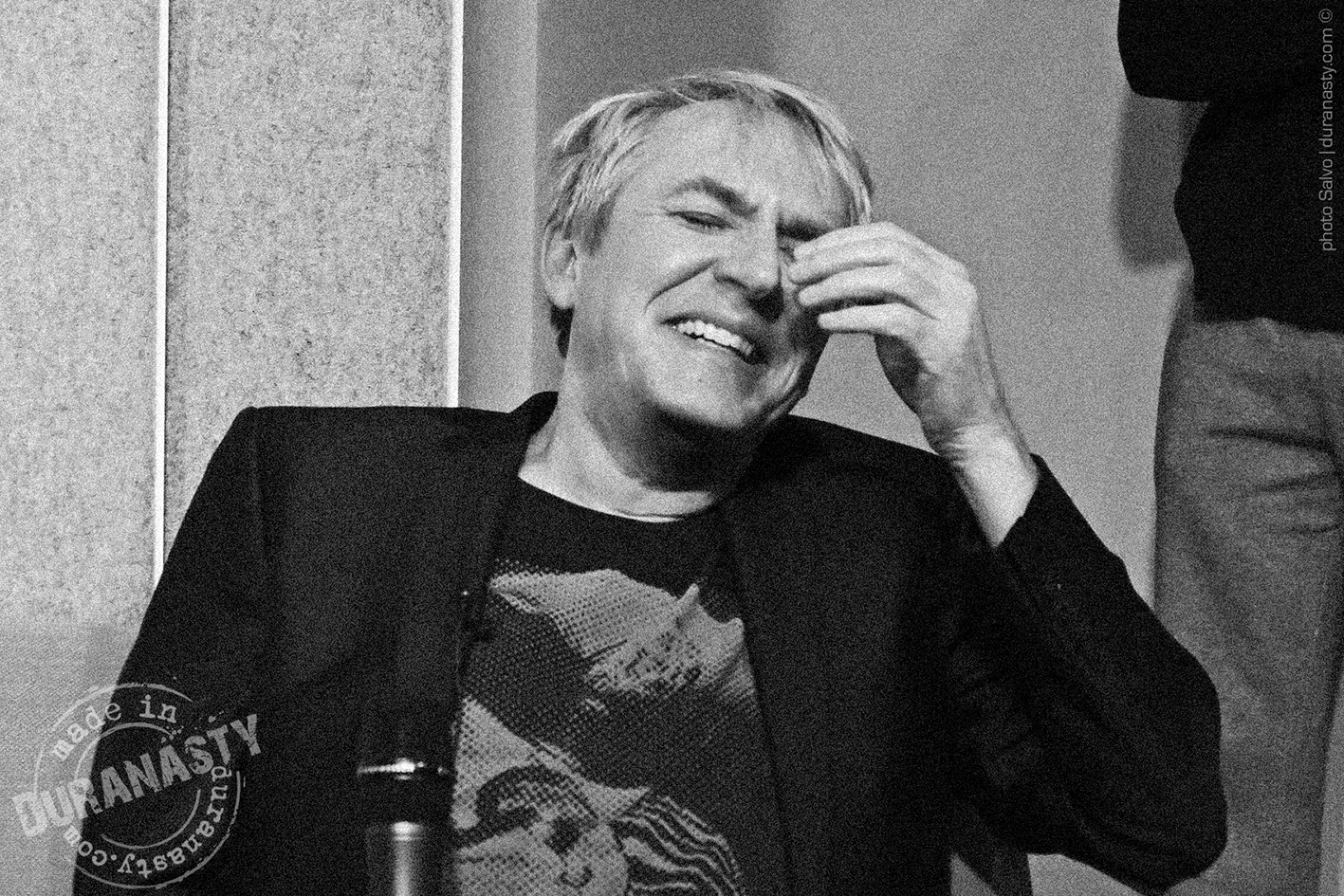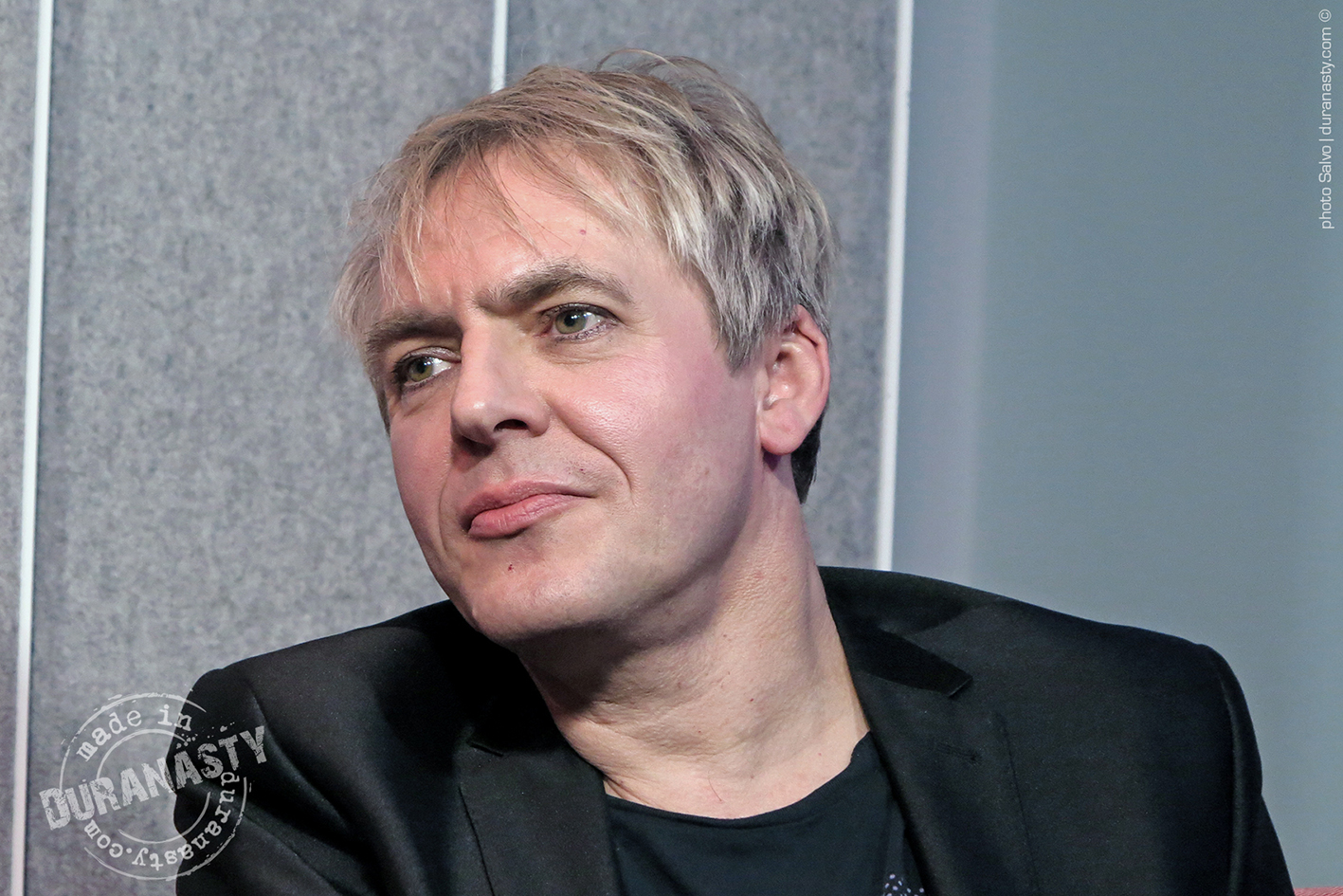 Above an intense close-up of Nick Rhodes, absorbed in his own thoughts, listening to the stories told by his colleagues, collecting his reflections on David Bowie, just before his speech.