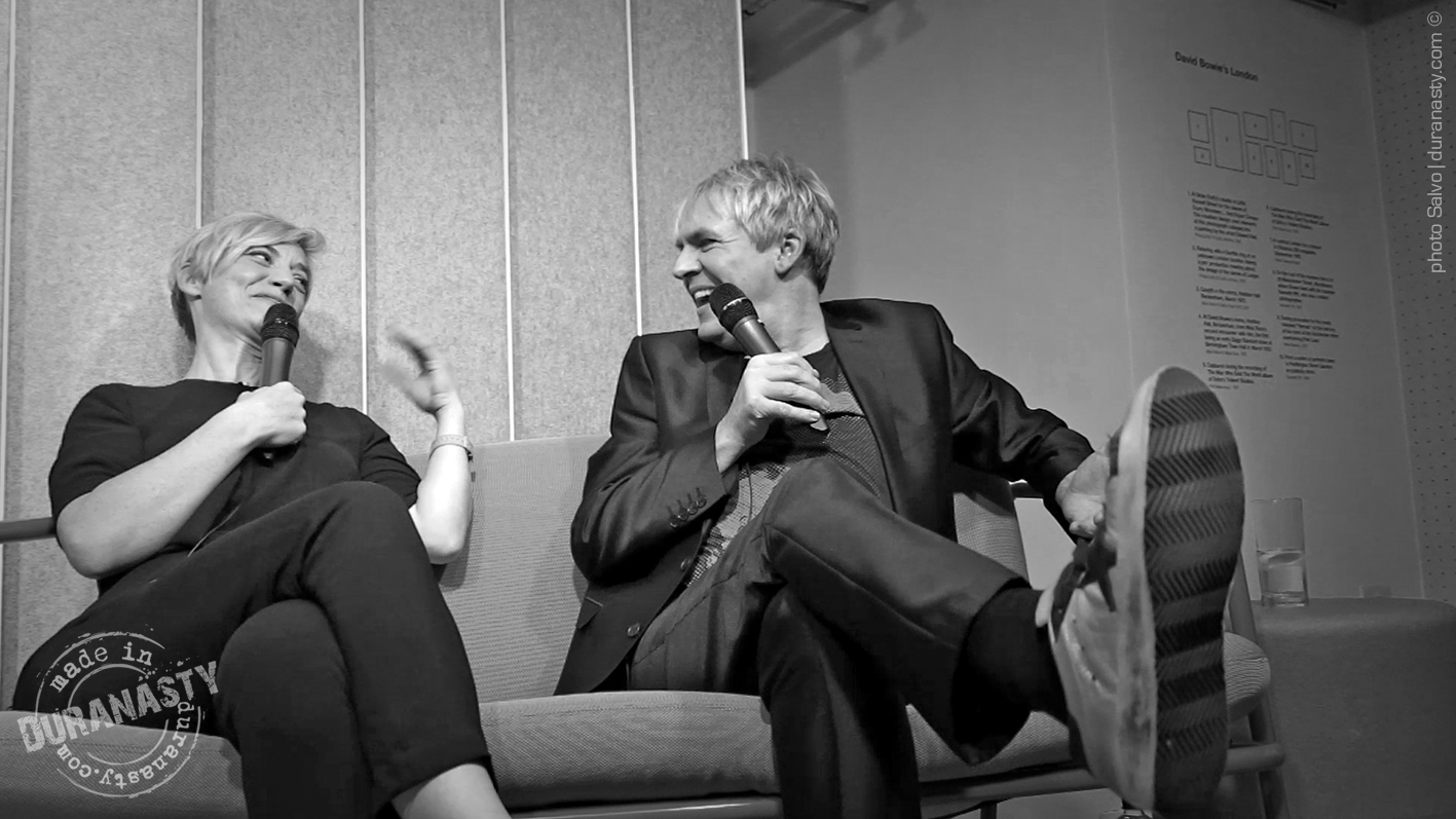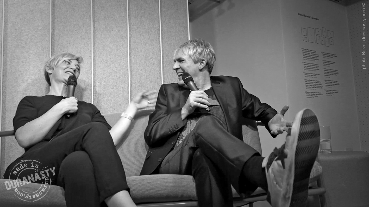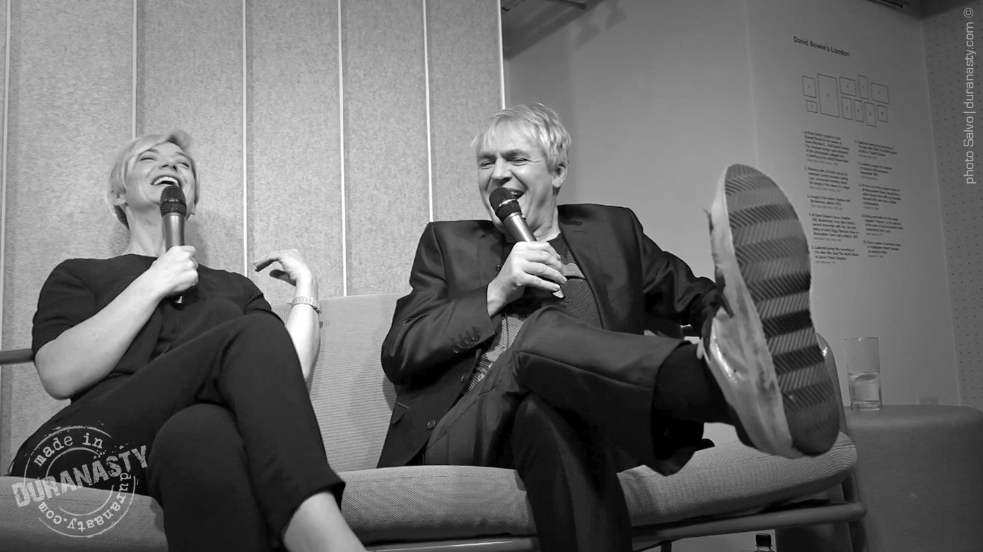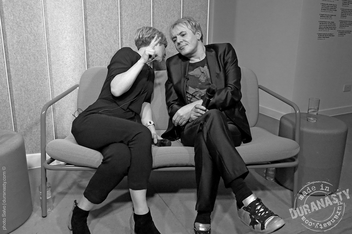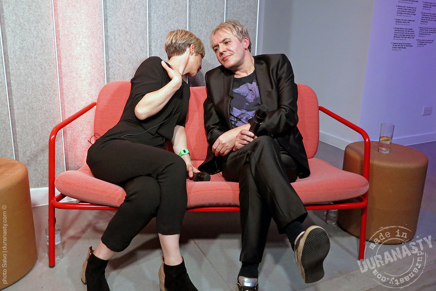 Nick Rhodes entertaining the audience and the other special guests with his personal stories on David Bowie during the amazing event held at Sonos in London. In the pictures Rhodes with Miranda Sawyer and Graham Coxon.