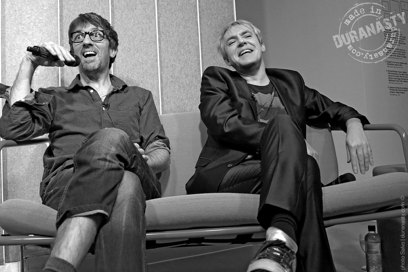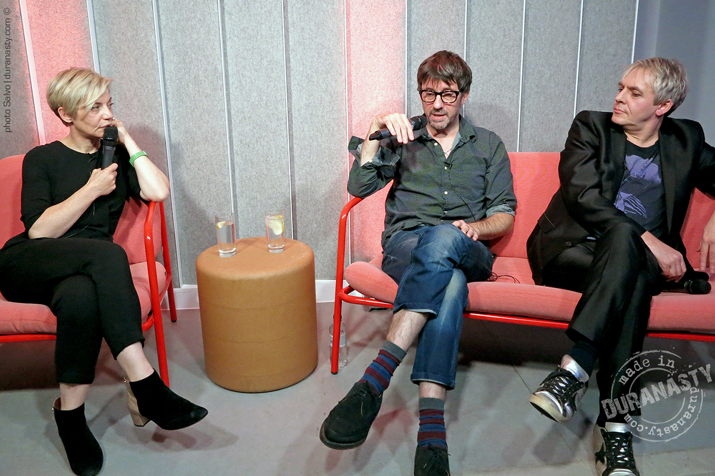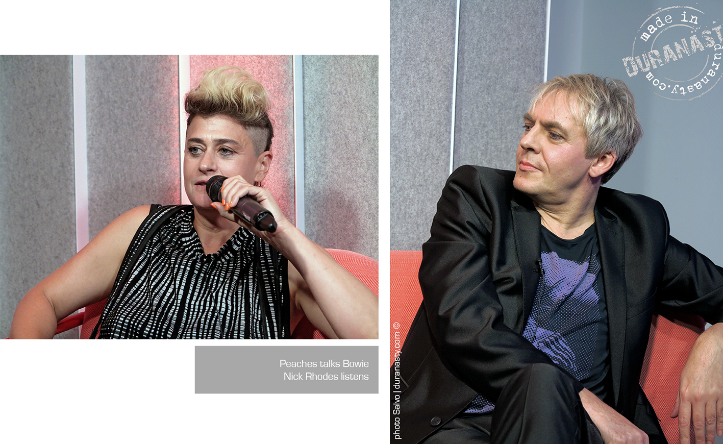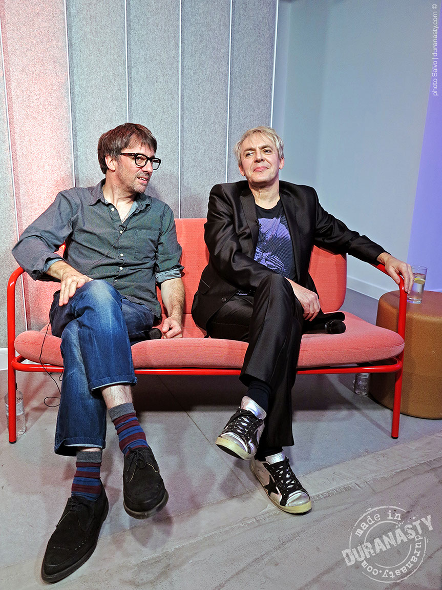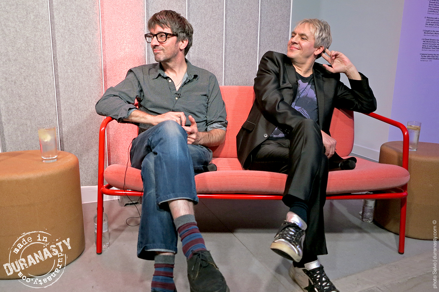 Nick Rhodes entertaining the audience and the other special guests with his personal stories on David Bowie during the amazing event held at Sonos in London. In the pictures Rhodes with Miranda Sawyer and Graham Coxon.
